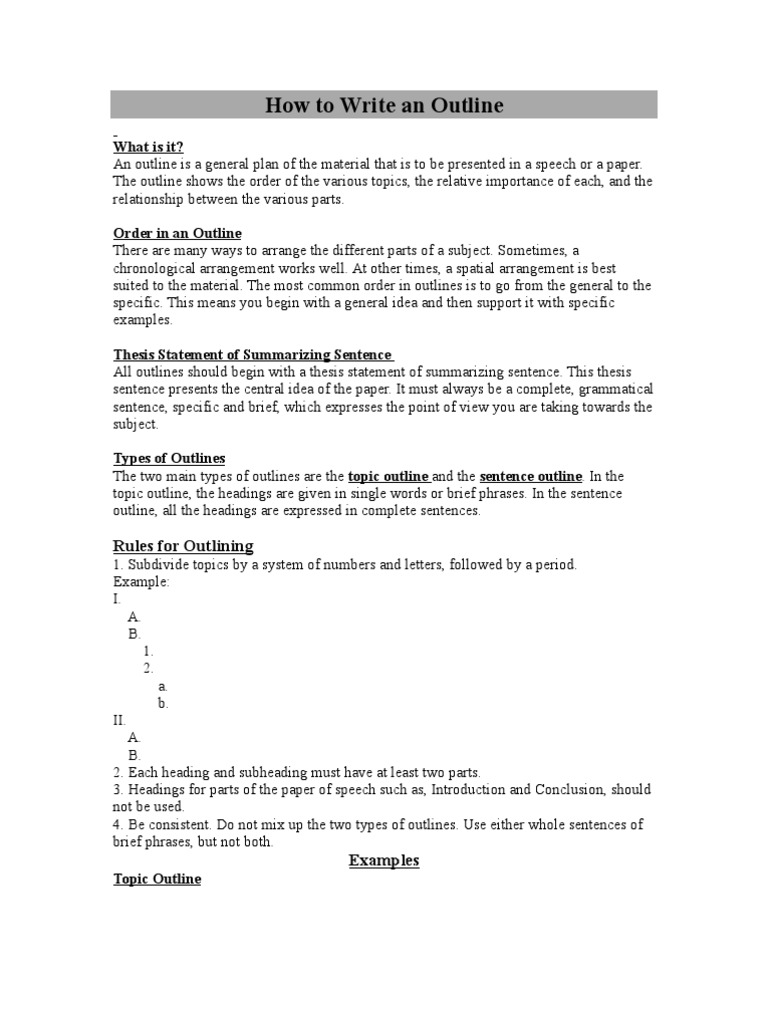 Examples On How To Write A Sentence Outline Examples